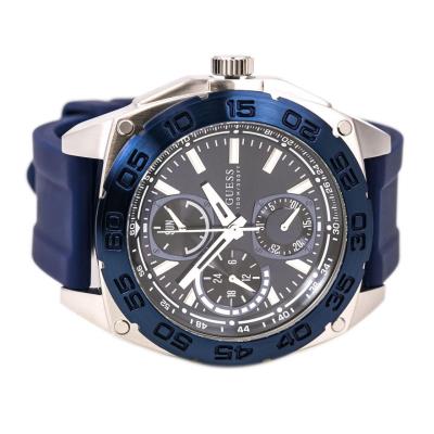 Đồng Hồ Guess Sporty Silver-Tone & Blue Silicone Multi-Function Watch [U0486G1]